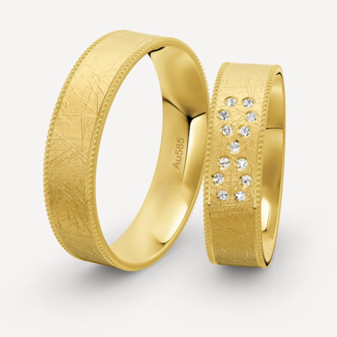 Alliances de Mariage et de Fiançailles Personnalisées en Or Pur Original 10k 14k 18k avec Diamant, Ensemble d'Anneaux Assortis pour Couple, Hommes et Femmes
