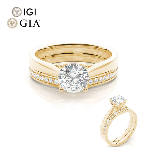 Usine Gia Igi Certifié Vvs Cvd Lab Cultivé Créé Diamant 10k 14k 18k Or Massif Bagues De Fiançailles De Mariage Ensemble De Couple De Mariée